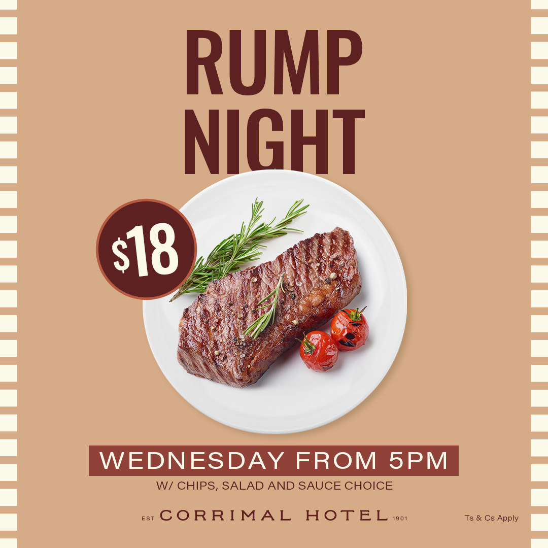Enjoy a juicy rump steak cooked to perfection, served with chips, salad, and your choice of sauce.